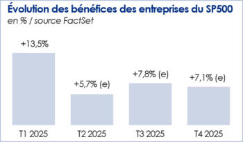 Alors que la saison des publications trimestrielles se termine, un constat s’impose : les entreprises ont rassuré les investisseurs. Aux Etats-Unis, la croissance de la masse des profits va en effet ressortir autour de +13,5% pour l’indice Standard & Poor’s 500, soit plus de 6 pts au-dessus des attentes, selon Factset.