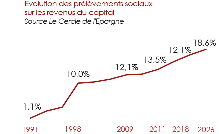 Et de onze ! Pour boucler son budget, le gouvernement Lecornu a cédé à la facilité, comme la plupart de ses prédécesseurs, en actant la onzième hausse du taux des prélèvements sociaux, lequel ressort désormais à 18,6%. Pour rappel, cet impôt créé en 1991, et qui s’applique aux revenus du patrimoine, n’était à l’origine composé que de la Contribution sociale généralisée (CSG), dont le taux ressortait de 1,1%. Ensuite, la mécanique s’est complexifiée avec, notamment en 1996, la création de la Contribution pour le remboursement de la dette sociale (CRDS), laquelle devait soi-disant prendre fin en 2009… Il n’en fut rien et en 35 ans, le taux global des prélèvements sociaux a donc été multiplié par 17 avec ce dernier (?) clou enfoncé par le Premier ministre.